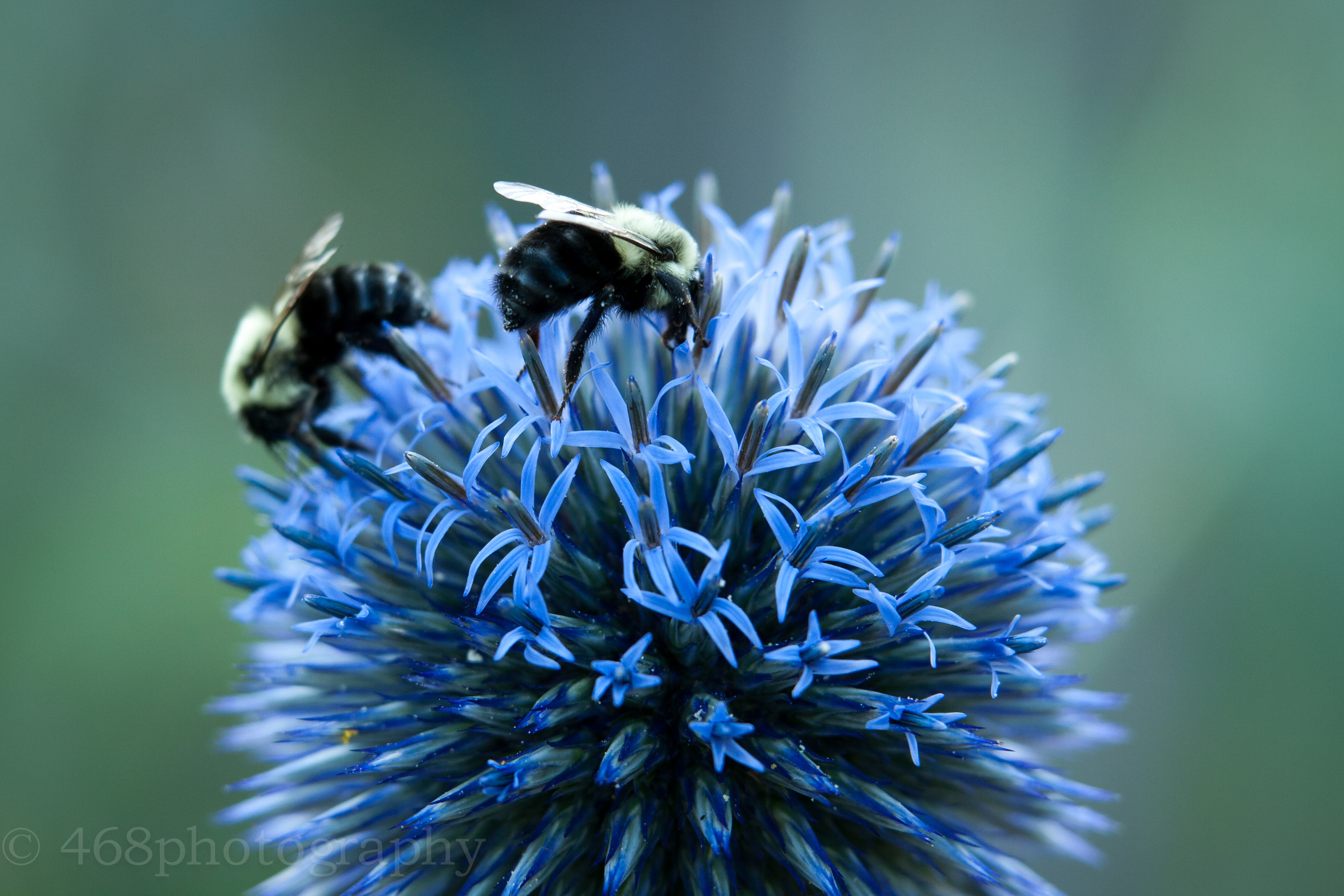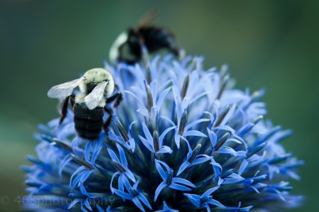 Tags apiary, bug, bumble bee, busy, check out those knees, globe thistle, honey, insect