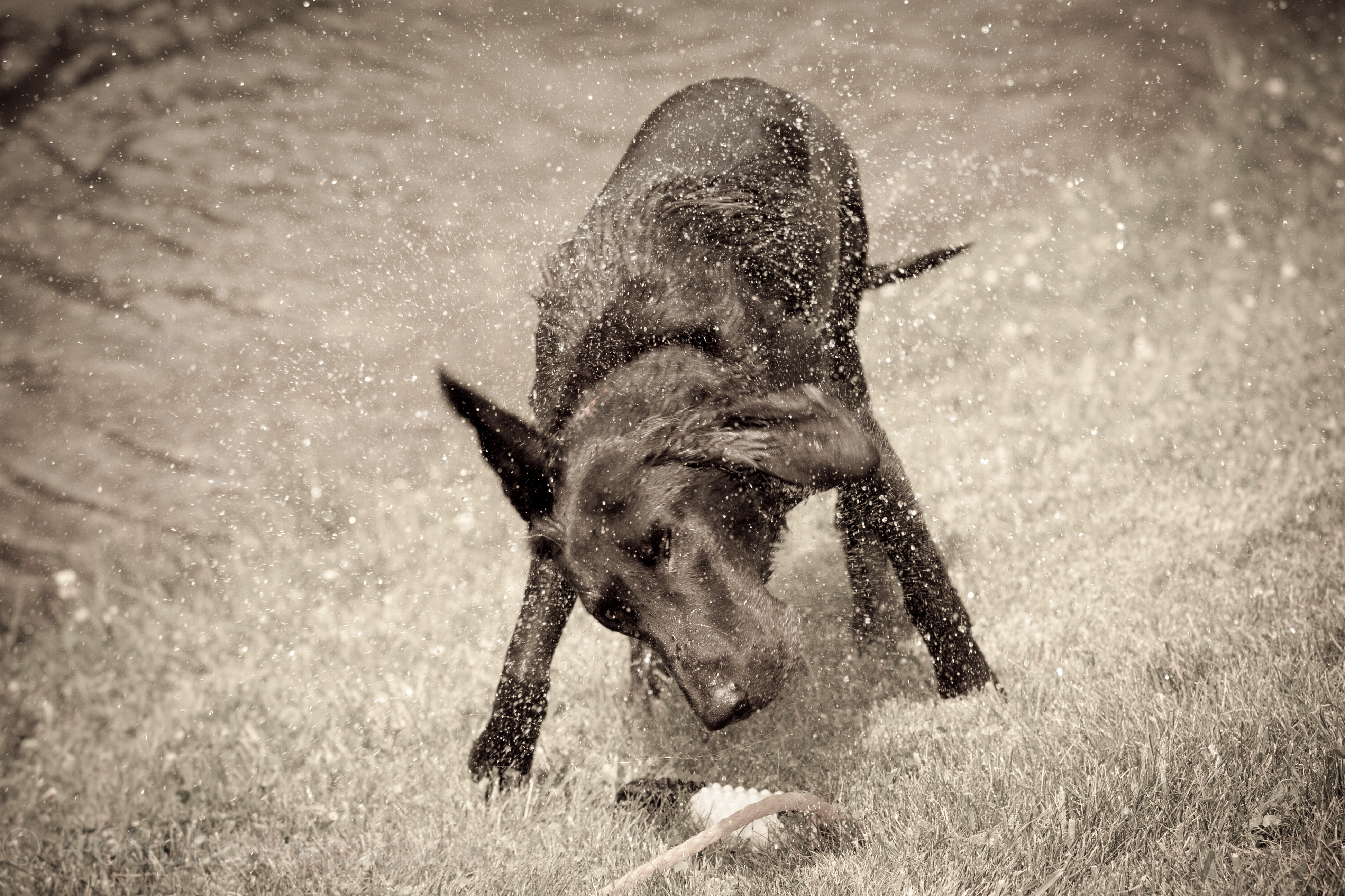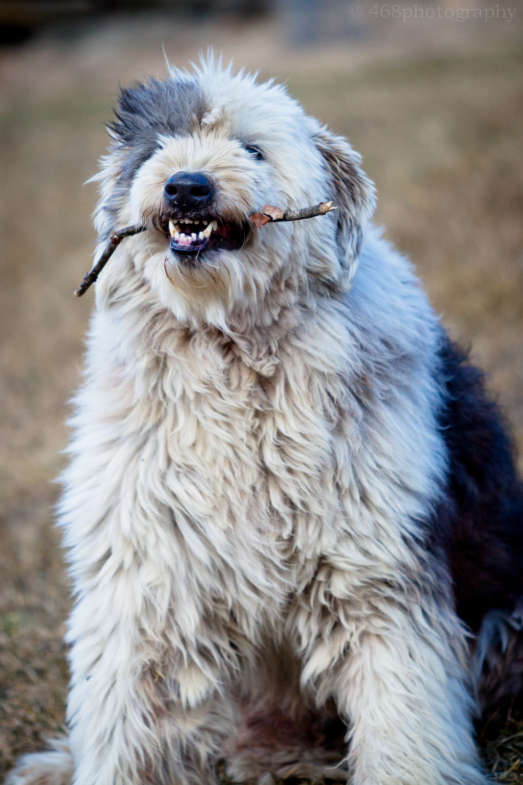 Tags bear, dog, fetch, hairy, Livingston Brook Farm, Old English sheepdog, stick