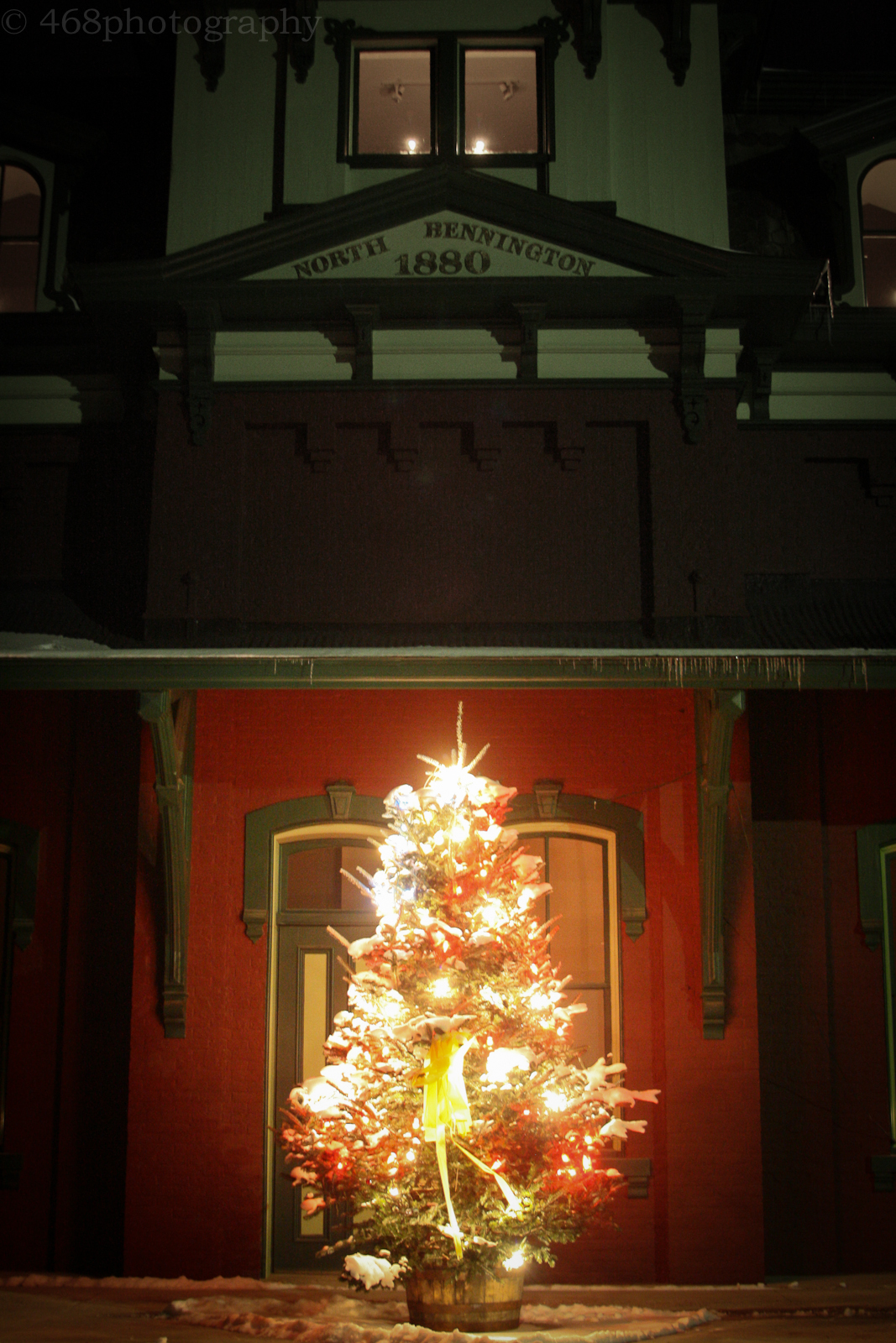 Tags Christmas, holiday, lights, North Bennington Station, tree