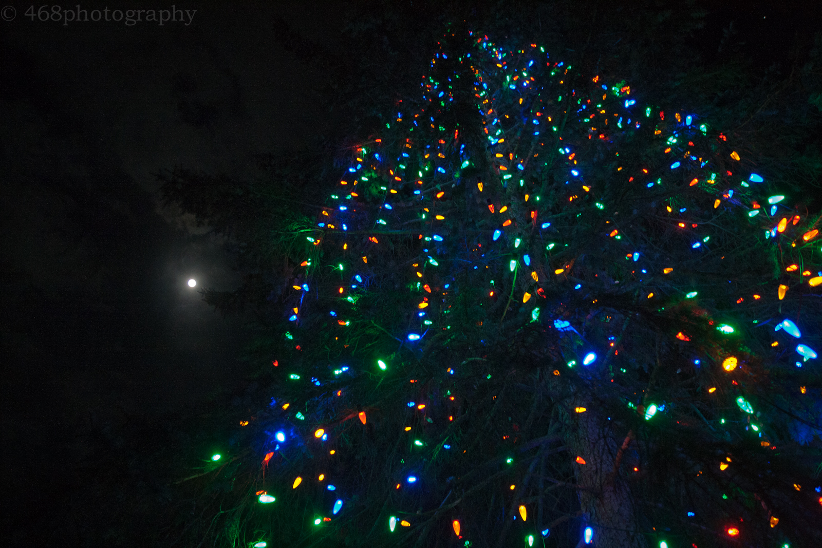 Tags Christmas, christmas lights, Greenwich NY, moon, tree